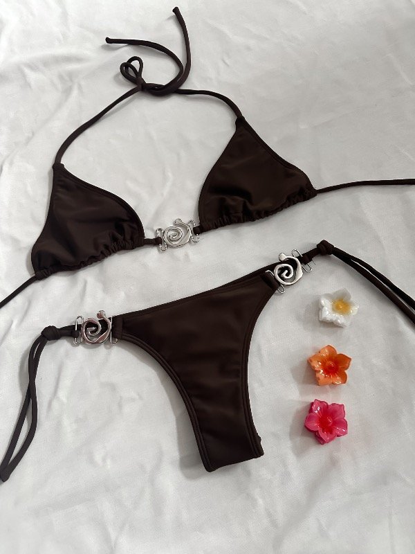 Bikini de lycra con corpiño tipo triángulo, está diseñado para brindarte un gran sostén y comodidad, ideal para todos los tamaños de busto. Su estructura de base fija asegura una sujeción firme, mientras que las tiras regulables en la espalda te permiten ajustarlo perfectamente a tu cuerpo, adaptándose a todos los contornos