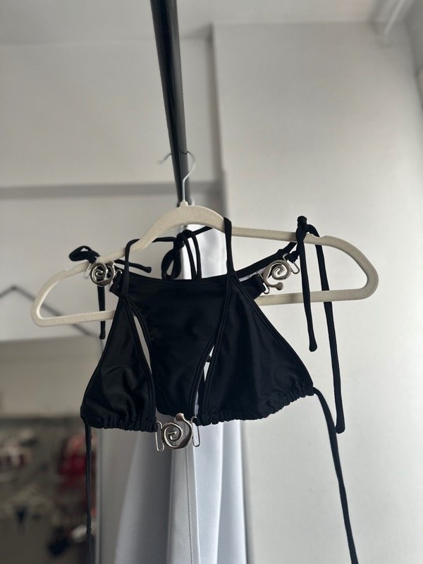 Bikini de lycra con corpiño tipo triángulo, está diseñado para brindarte un gran sostén y comodidad, ideal para todos los tamaños de busto. Su estructura de base fija asegura una sujeción firme, mientras que las tiras regulables en la espalda te permiten ajustarlo perfectamente a tu cuerpo, adaptándose a todos los contornos