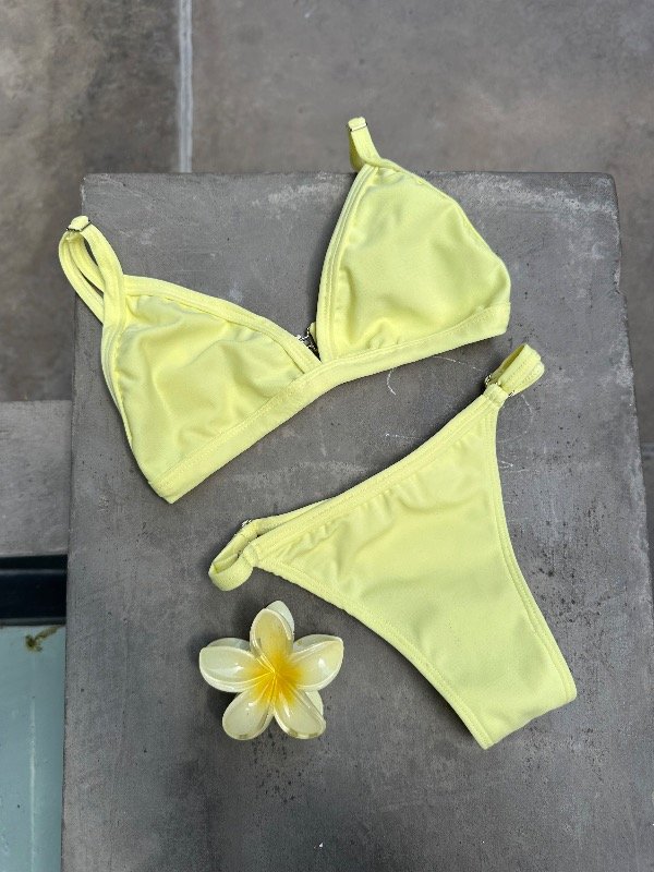 Bikini de lycra premium con corpiño tipo triángulo regulable, está diseñada para brindarte un gran sostén y comodidad, ideal para todos los tamaños de busto. Su estructura de base fija asegura una sujeción firme, mientras que las tiras de lycra regulable en la espalda te permiten ajustarlo perfectamente a tu cuerpo, adaptándose a todos los contornos.