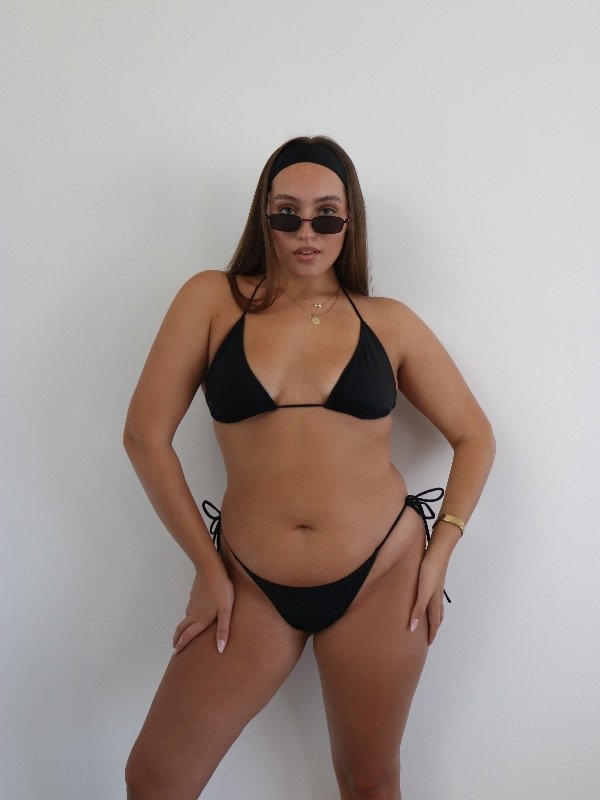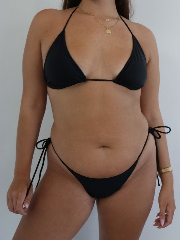 Bikini de lycra premium con corpiño tipo triángulo para atar, está diseñado para brindarte un gran sostén y comodidad, ideal para todos los tamaños de busto. Su estructura de base fija asegura una sujeción firme, mientras que las tiras de lycra para atar en la espalda te permiten ajustarlo perfectamente a tu cuerpo, adaptándose a todos los contornos.