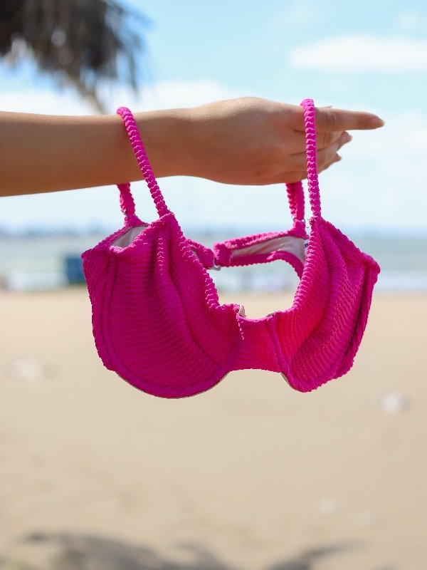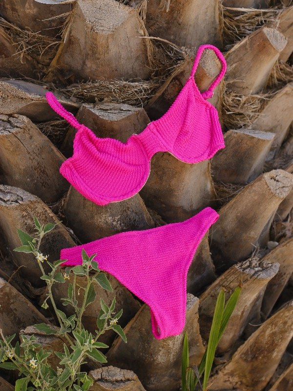 Bikini de lycra con corpiño con aro, está diseñado para brindarte un gran sostén y comodidad, ideal para todos los tamaños de busto. Su estructura de base fija asegura una sujeción firme, mientras que las tiras regulables en la espalda te permiten ajustarlo perfectamente a tu cuerpo, adaptándose a todos los contornos