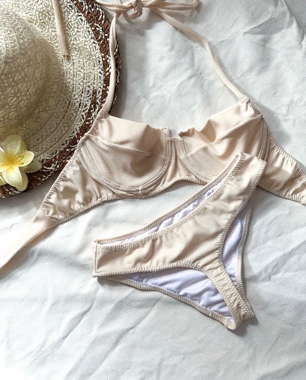 Bikini de lycra con corpiño con aro, está diseñado para brindarte un gran sostén y comodidad, ideal para todos los tamaños de busto. Su estructura de base fija asegura una sujeción firme, mientras que las tiras regulables en la espalda te permiten ajustarlo perfectamente a tu cuerpo, adaptándose a todos los contornos