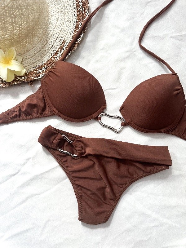 Bikini de lycra con corpiño tipo triángulo con taza soft, está diseñada para brindarte un gran sostén y comodidad, ideal para todos los tamaños de busto. Su estructura de base fija asegura una sujeción firme, mientras que las tiras de lycra para atar en la espalda te permiten ajustarlo perfectamente a tu cuerpo, adaptándose a todos los contornos.